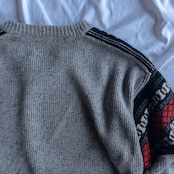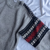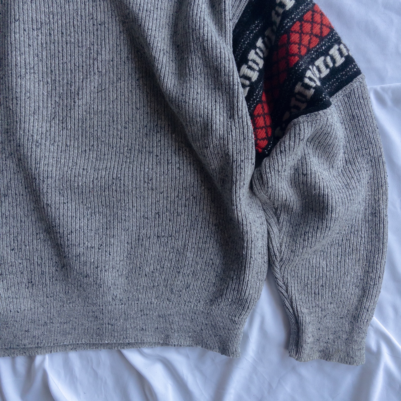 ネップ混のグレーボディにフェアアイルのフェルトウールの大胆な切り替え