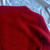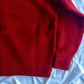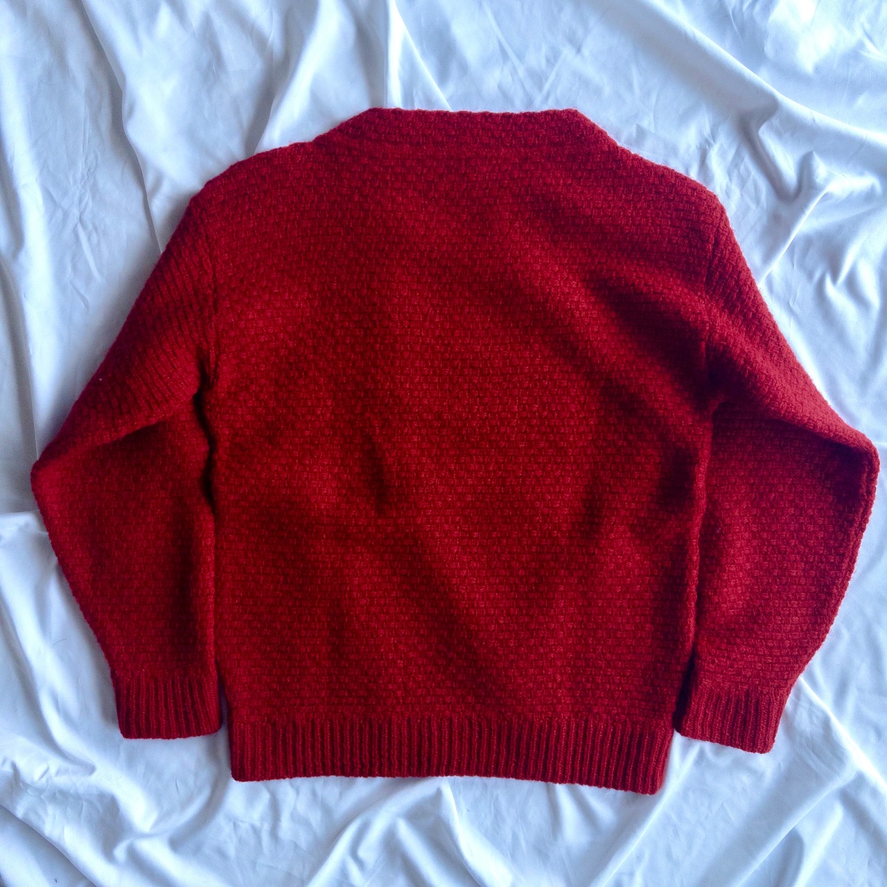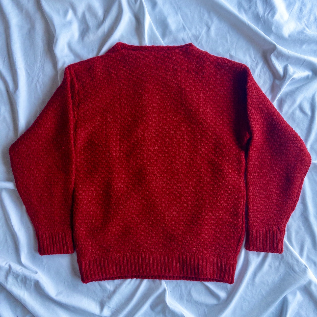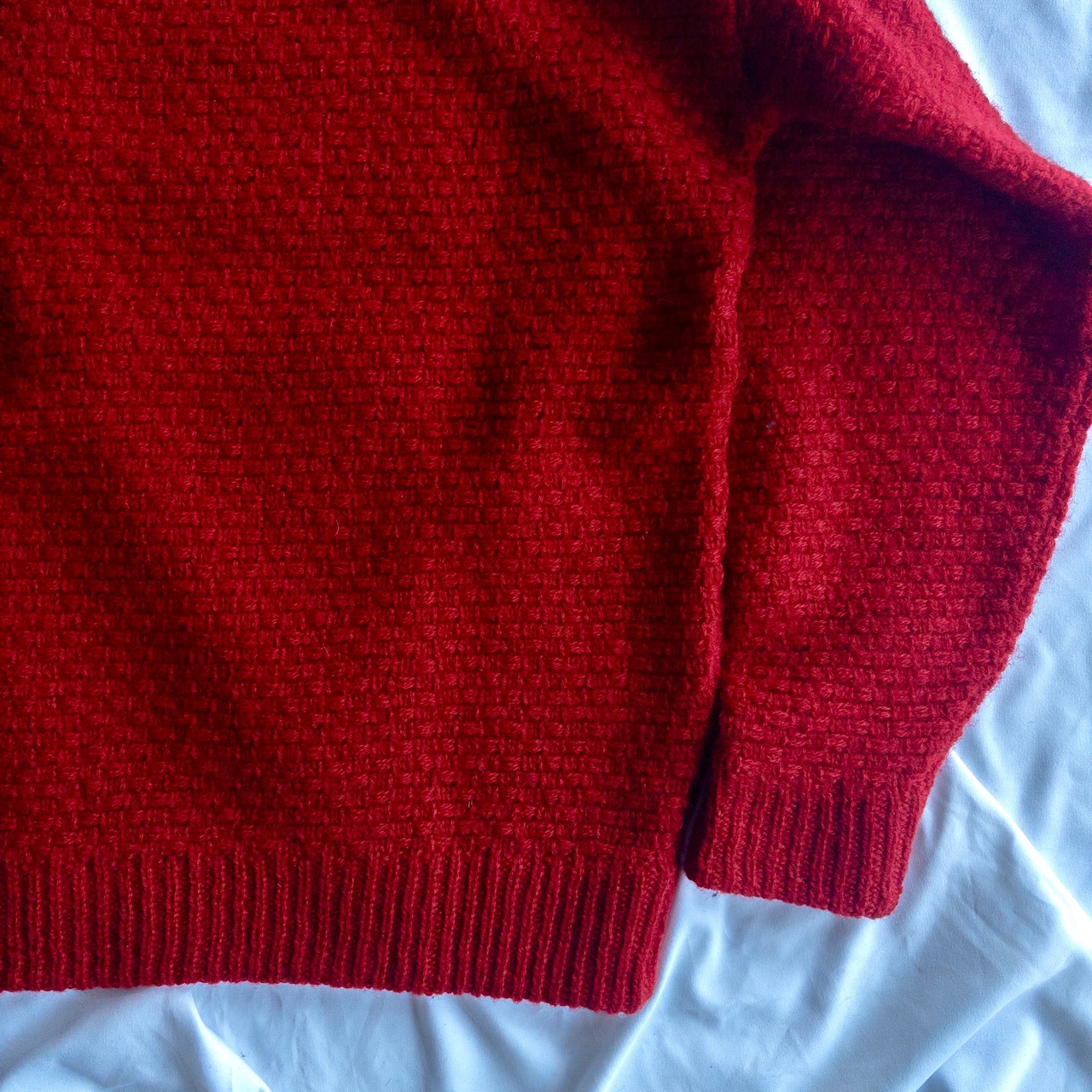 肉厚なウールボディ、レンガを積み上げたようなモザイクタイルのような編み地