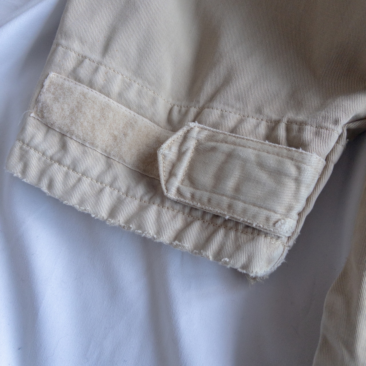 ポケット口には謎のベルクロ、首元にはロープ、脇下のベンチレーションには被せをしてあったりとややこしくて面白いディテール