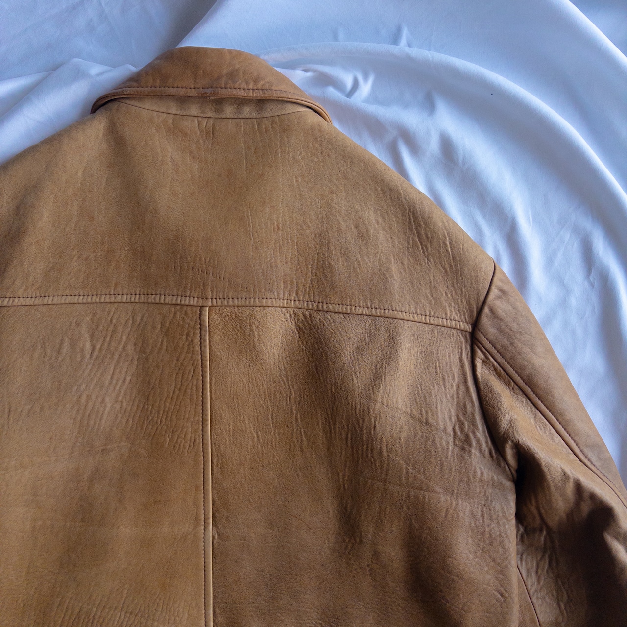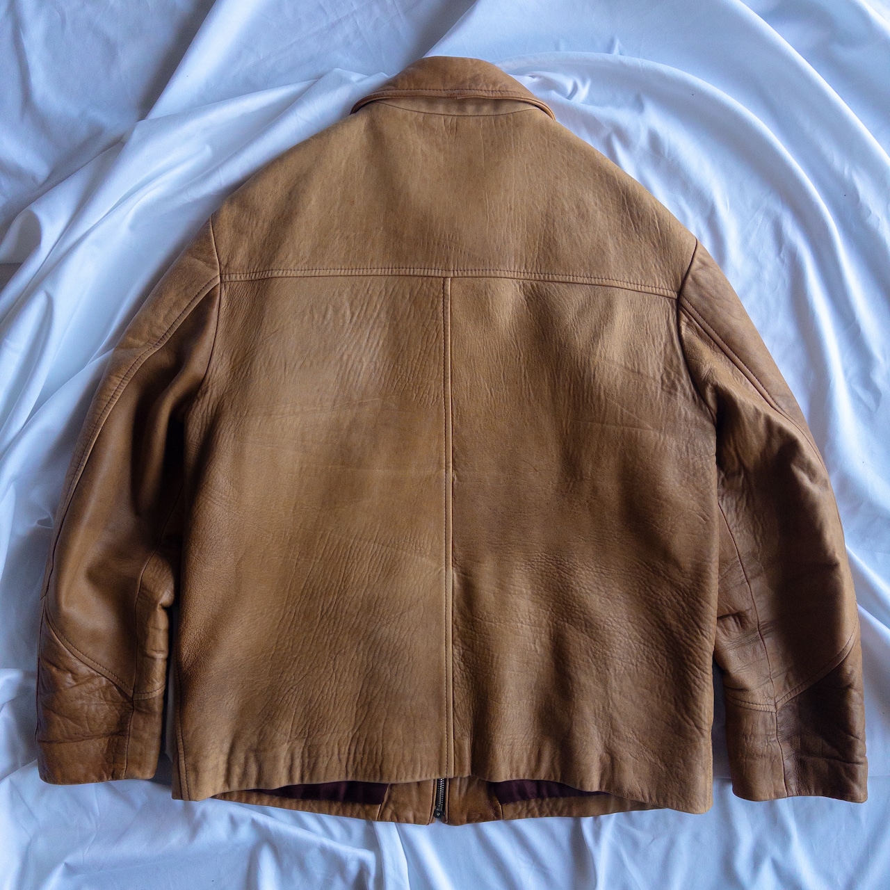綺麗に着込まれて、皺の刻まれた飴色レザージャケット