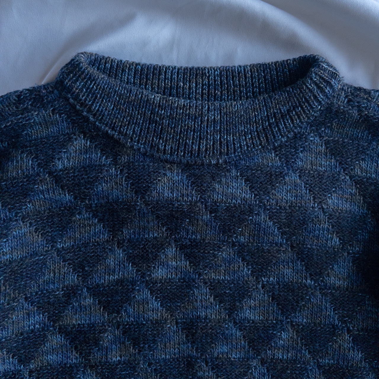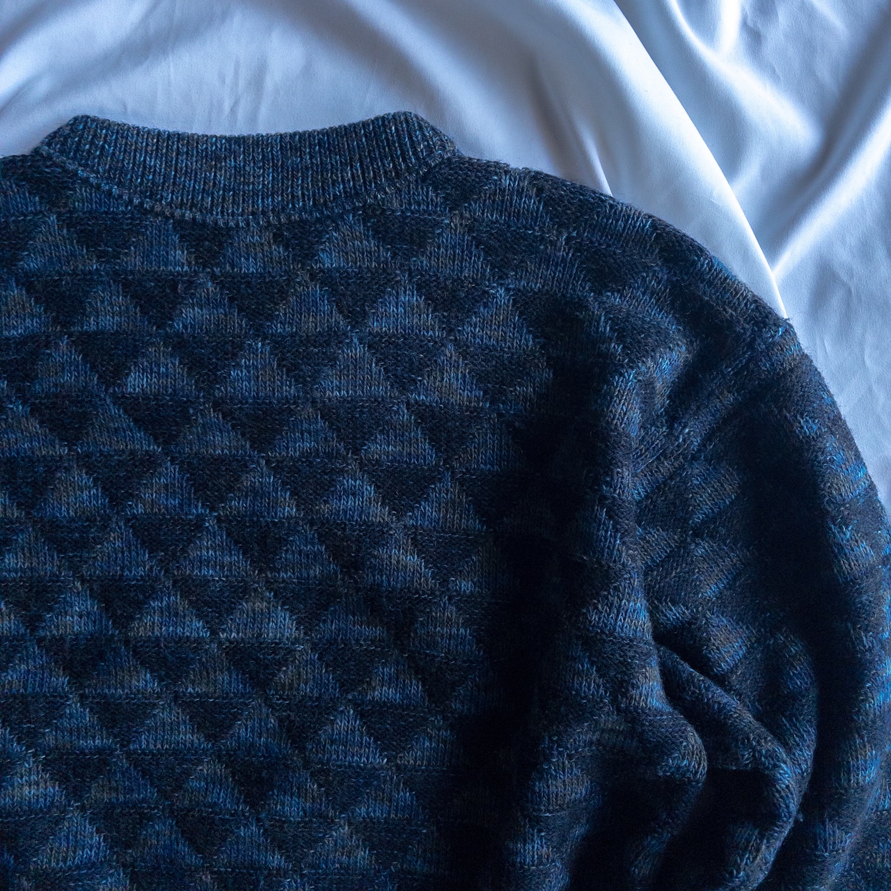 トライアングルパターンのキルトパッチのような幾何学模様の編み柄