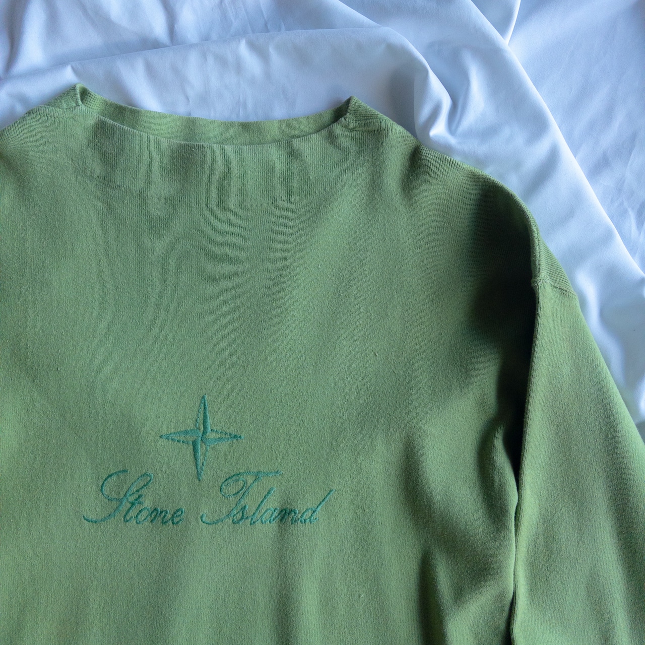 1987SS STONE ISLAND Script Logo Boat Neck Knit Jumper