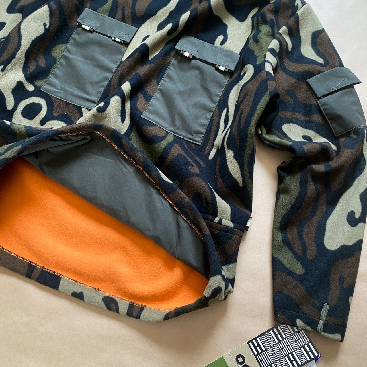 縮絨させたかのように目の詰まったボンディングフリース、忍者カモ